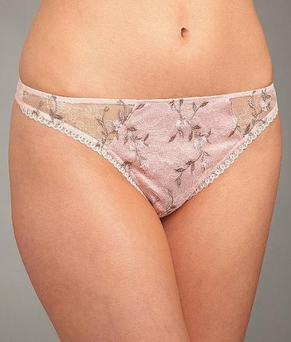 Felina Style 530461. Minimal coverage thong. Sheer, stretch lace. Pretty floral embroidery. Front panel is lightly lined for modesty. Scalloped trim along front leg bands. Soft mesh on back. Thin elastic waistband. Cotton panel. Low, 5 inch rise.